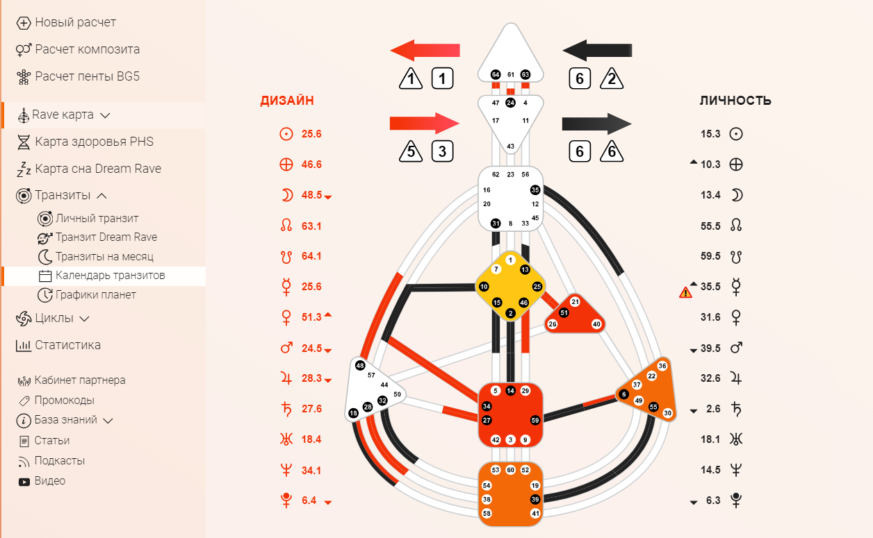 - Детальный график транзитов и аспектов - от транзита Солнца до Венеры, Юпитера и других планет, с указанием дат, времени и влияния на каждый канал Человека.