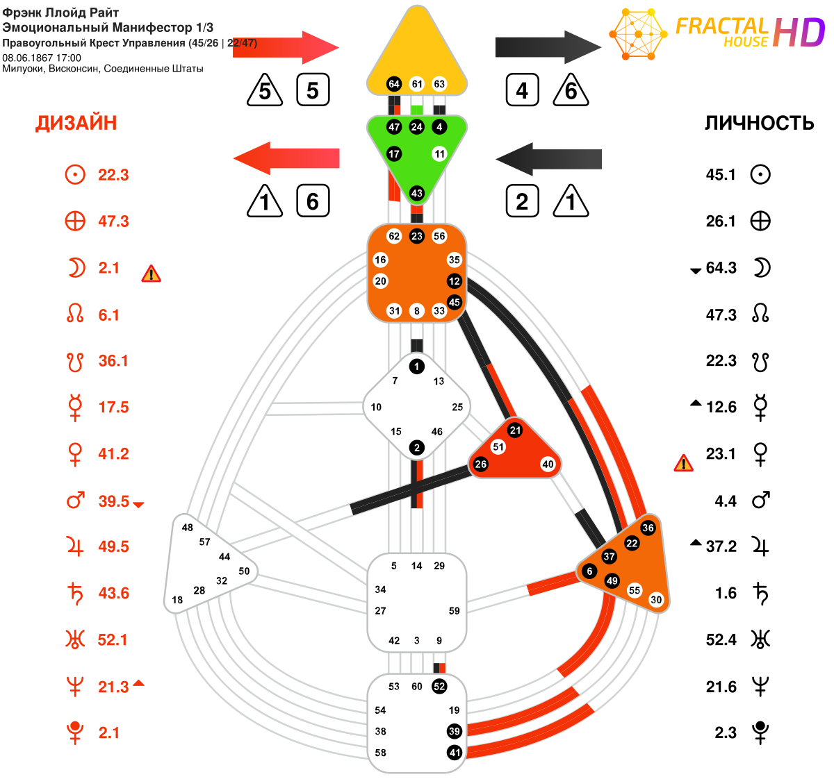 Почему по заключению Американского института архитекторов — самый влиятельный из всех архитекторов США ? Британская энциклопедия называет его «самым творческим гением американской архитектуры» и не зря, он прилежно учился и развивал свой опыт, в 26 лет основал собственную фирму (не удивительно, т.к. Манифестору, да еще и с каналом 45-21 очень напряжно работать на кого-то еще). Он создал собственный стиль - дома, который полностью вписываются в природный ландшафт. Чувство прекрасного 12-22 соединилось с творчеством 1х ворот и гениальным видением рожденным каналами 64-47 и 23-43.